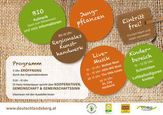 Unsere regionalen Biobauern der Bio Ernte Steiermark bieten wieder ihre Produkte aus nachhaltigem Anbau und besonders tierfreundlichen Haltungssystemen an. Für alle Geschmäcker von deftig über leicht, vegetarisch, vegan bis hin zu süß ist was dabei. Genauso vielfältig ist das Getränkeangebot - Säfte, Weine, Bier und Kaffee wird reichlich vorhanden sein - alles in gewohnter Bioqualität.