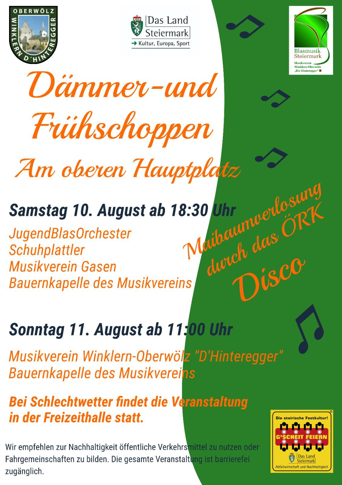 Am 10. und 11. August fand der Dämmer- und Frühschoppen des MV Winklern-Oberwölz am oberen Hauptplatz in Oberwölz statt.