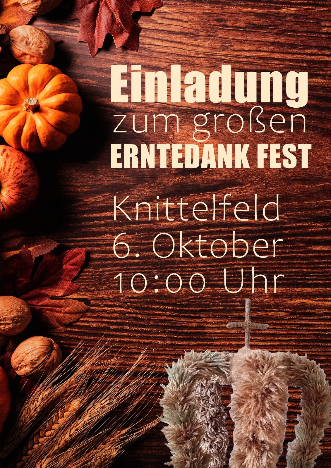 ErntedankfestBeginn:06.10.2024, 10:00 Uhr Ende:06.10.2024, 15:00 Uhr Ort:Kirchplatz in KnittelfeldVeranstalter:Herbert GranglErntedankfest in KnittelfeldInfosEinladung Teil 2 (838.87 K)Einladung (882.84 K)