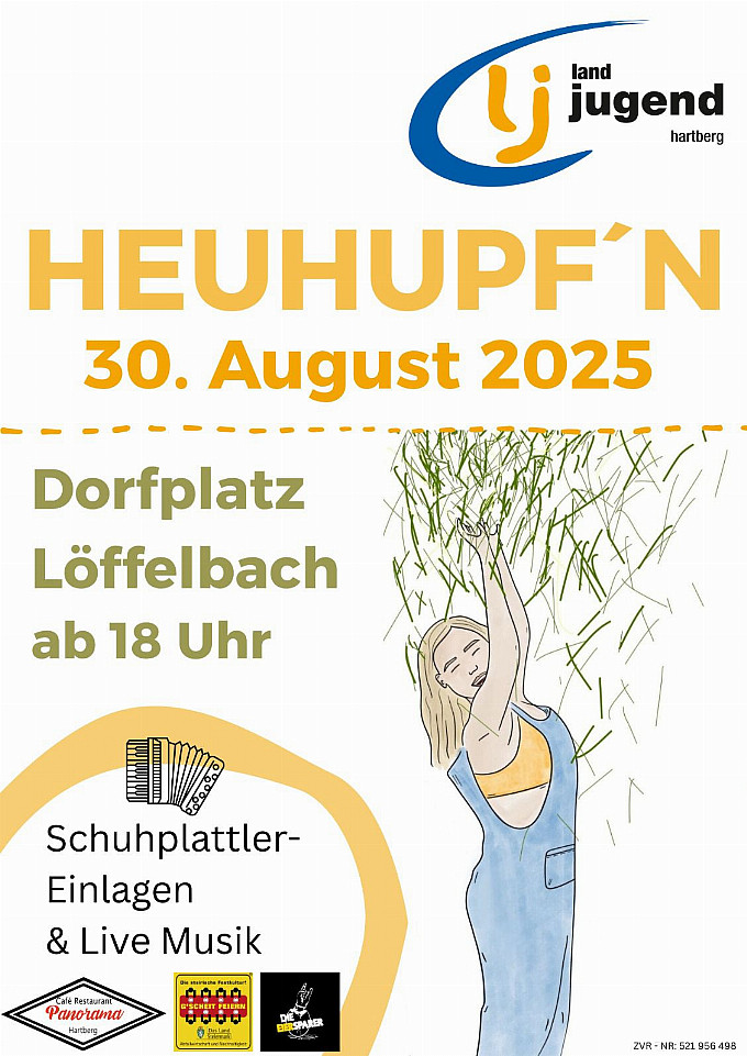 Am 30. August 2025 ist es für uns soweit: unser „Heuhupfn“ steht vor der Tür. Wir, die Landjugend Ortsgruppe Hartberg freuen uns auf Ihren Besuch!