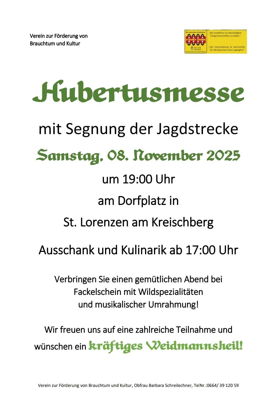 Herzlich willkommen zur Hubertusmesse mit Segnung der Jagdstrecke in St. Georgen am Kreischberg!