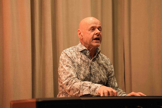 Jörg-Martin Willnauer liest, er singt, begleitet sich dabei am Klavier und rezitiert Mundartgedichte.
