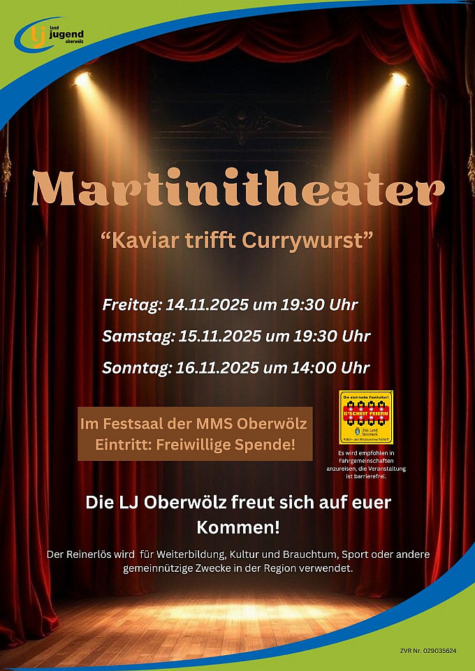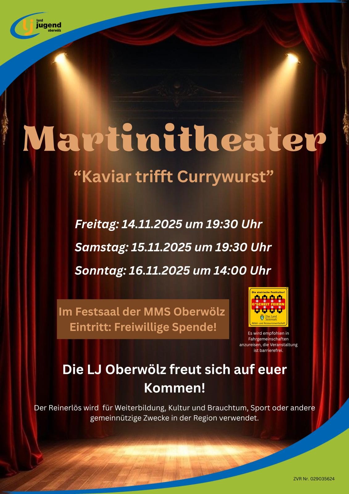 Von 14. bis 16. November findet das jährliche Martinitheater der Landjugend Oberwölz in der Mittelschule in Oberwölz statt.
