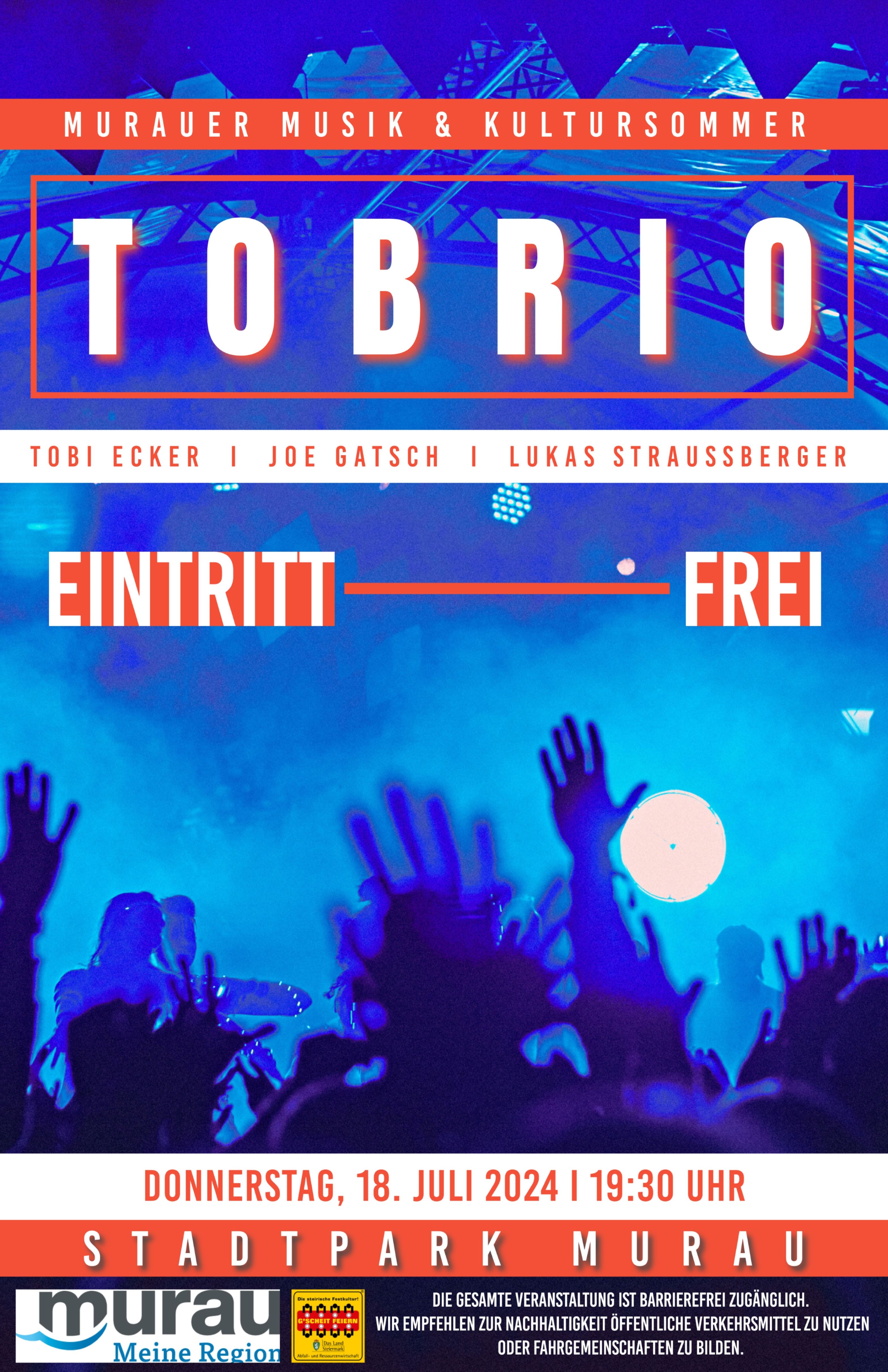 Die Veranstaltung fand im Rahmen des Murauer Musik- und Kultursommers statt. Den Abend gestaltete die Gruppe TOBRIO. Das Konzert fand im Stadtpark Murau - Musikpavillon statt. Die Ausgabe der Getränke erfolgte durch Mitglieder des MV Murau.