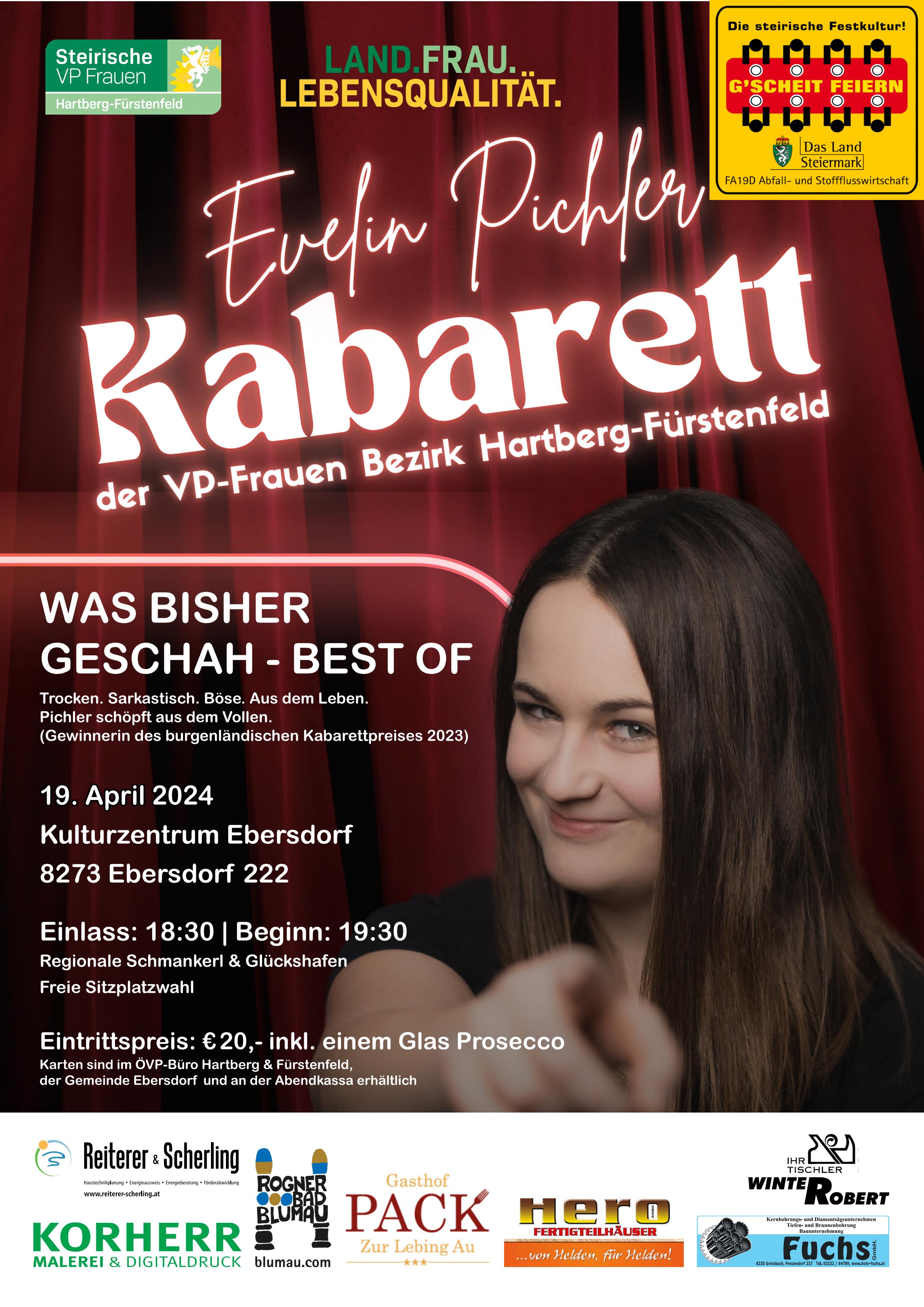 Der Kabarettabend am 19. April, veranstaltet von den VP-Frauen Hartberg-Fürstenfeld, unter dem Motto land.frau.lebensqualität mit Evelin Pichler war ein voller Erfolg!