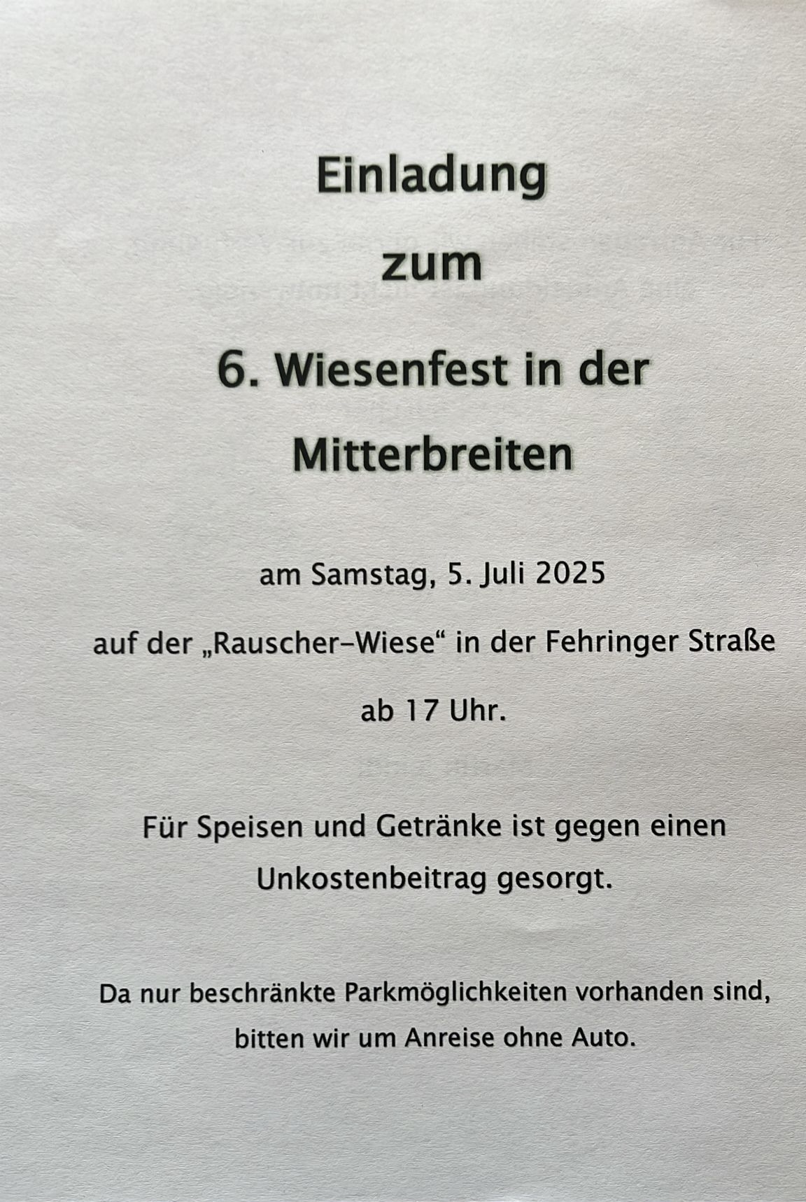Wiesenfest 2025Beginn:05.07.2025, 17:00 Uhr Ende:05.07.2025, 23:00 Uhr Ort:Fehringerstraße 79 in FürstenfeldVeranstalter:Johann RauscherNachbarschaftsfest für die Bewohner des Stadtteiles Mühlbreiten in FürstenfeldInfos511529890_1169260895236696_2152458001036751949_n.jpg (399.79 K)